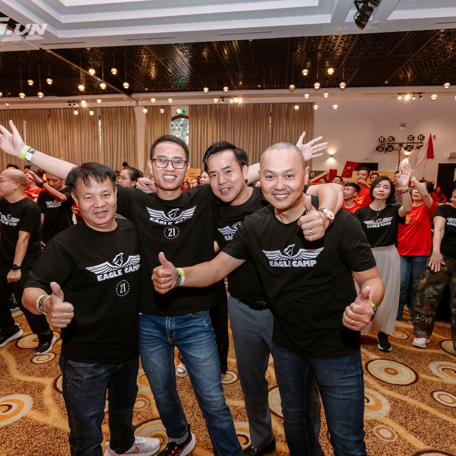 Giữa một hội trường đông kín người, anh không đứng trên sân khấu. Anh đứng giữa mọi người. Áo thun đen, nụ cười rộng, cái bắt tay chắc. Không có khoảng cách.