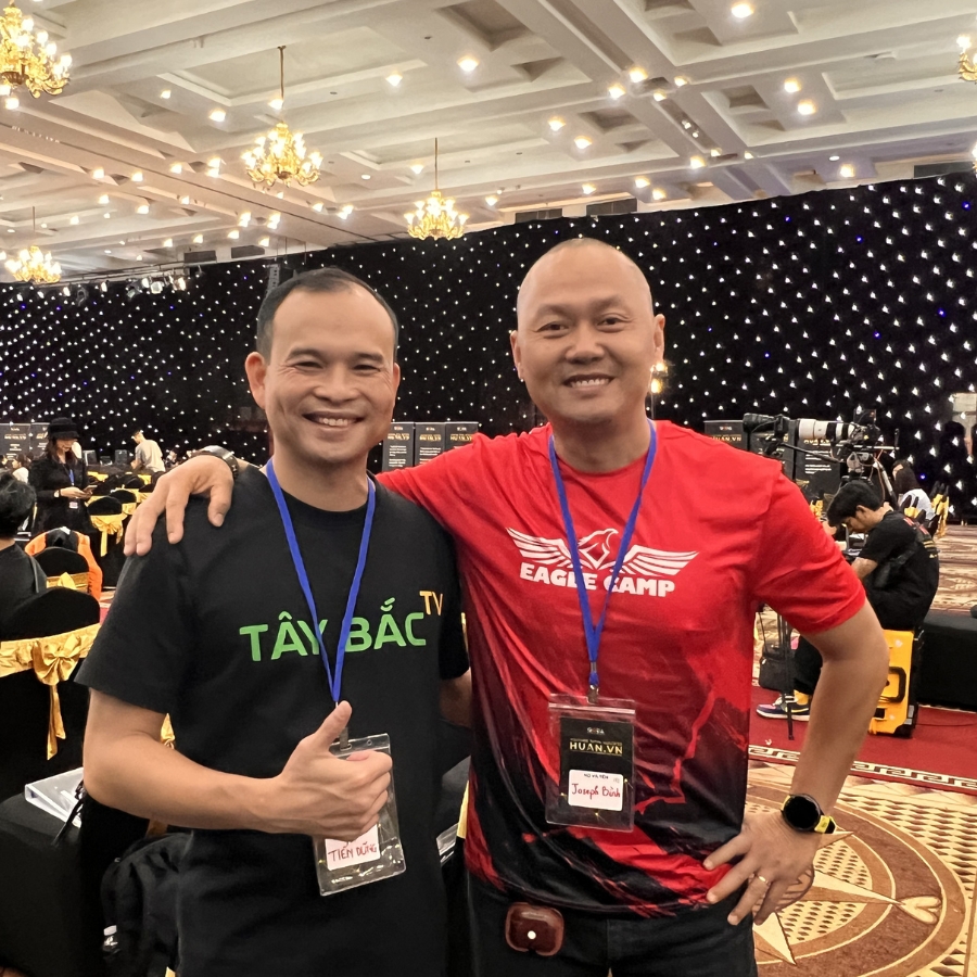 Có một điều tôi để ý khi nhìn anh đứng giữa Eagle Camp. Không phải ánh đèn. Không phải logo phía sau. Mà là cách anh đứng rất thẳng – nhưng không hề phô trương.